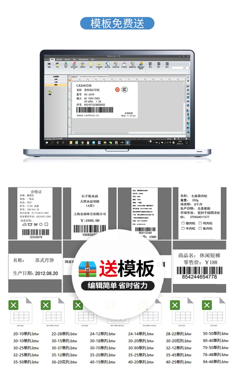 - 自動感測節省使用耗材的CASHION C-204條碼打印機